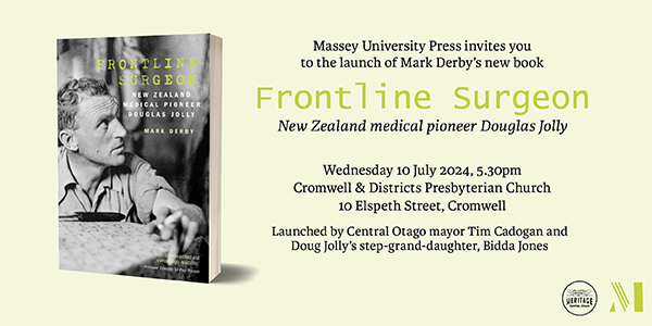 Central Otago Heritage Trust is delighted to partner with Massey University Press to celebrate the launch of Mark Derby’s new book : Frontline Surgeon – New Zealand medical pioneer Douglas Jolly.