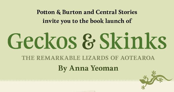 Potton & Burton and Central Stories invite you to an unforgettable book launch: “Geckos & Skinks – The Remarkable Lizards of Aotearoa” by Anna Yeoman.
